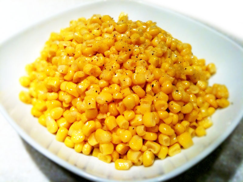 All I did was heat up some olive oil in the wok, then add the frozen corns, stir fry until the corn’s hot, then add a bit of water and chicken flavoring, put the lid on to let the flavor soak in a bit. I also added a bit of red pepper powder and fresh ground pepper on top. Not fancy, and tasted good nevertheless…
