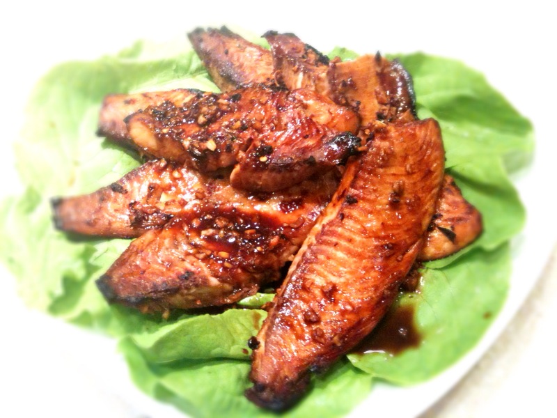 This is definitely one of those easy, healthy and delicious dishes that I would make again and again. The lovely green vegetable is from my Mama’s organic garden, the hot fish wilted the leaves a bit, and the sauce made a lovely salad dressing for it!
