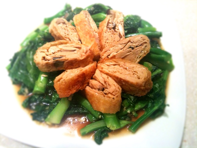 Sorry I’ve disappeared for a week, the Memorial Day weekend and little girl’s last week of Kindergarten meant lots of celebrations. Well today everything’s back to normal! This is a semi-homemade dish, the vegetarian duck is store bought, so I just modified Hong Kong style Gai Lan and stir fried it instead.
