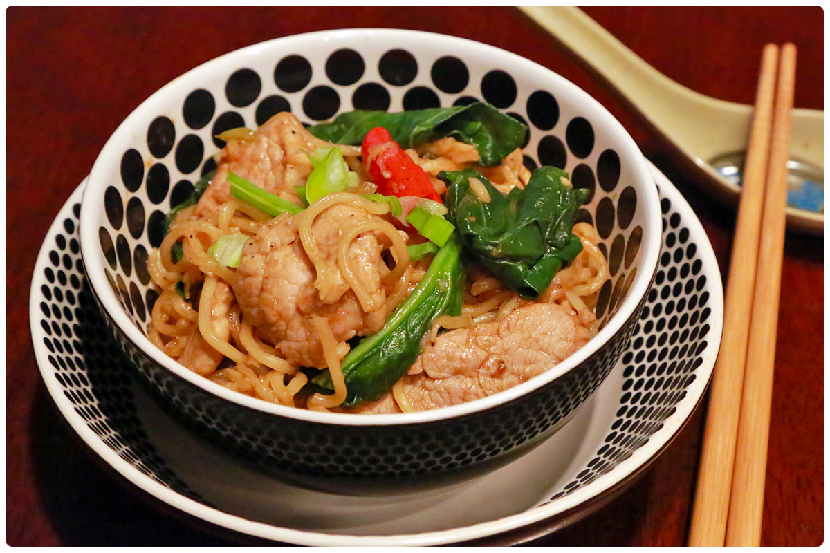 Hello Nami! I used to use the flavoring package that’s included in the Yaki Soba, but decided to try something a bit different today. Not sure whether this is how the Chinese restaurants stir fry their chow Mein, but my family enjoyed it very much. When I was tasting the sauce before pouring it into the wok, I thought the combination was a bit too salty, but the hoison sauce probably neutralized it somehow so the outcome was good. As for the soy sauce? Good question, my Mom tells me there’s a difference in taste between the dark and light ones, though I think it’s more of a color and consistency thing, maybe I should do a taste test so we can find out!