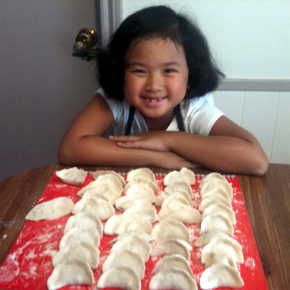 Sissi, thank you for the compliment, my little girl would prefer to play with her cousins also, but no one else showed up that day so my Mom decided to teach her how to make dumplings, which turned out to be a lot of fun!