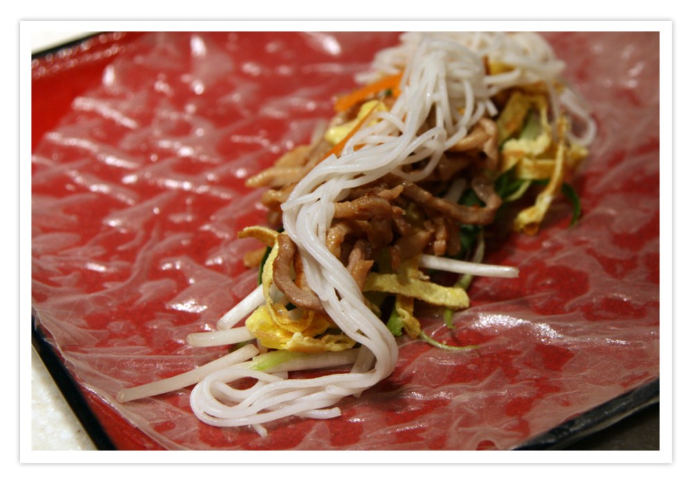 Jeno, I love spring rolls! In fact you will not believe me, but I have planned to write about spring rolls this week too πŸ˜‰ (Does it remind you of something? We have already had this telepathic post link with Korean noodles…). Your spring roll looks gorgeous, the presentation on the table looks amazing and I absolutely love the chopped omelet idea. I eat lots of eggs and am always open to new recipes where I can include them. I also agree about the thinly cut meat slices. (Here they are incredibly expensive, also sold frozen in Japanese shops, but I simply ask my butcher to cut some pork into slices with the machine he uses for ham.) One its less meat and more vegetables without thinking.
