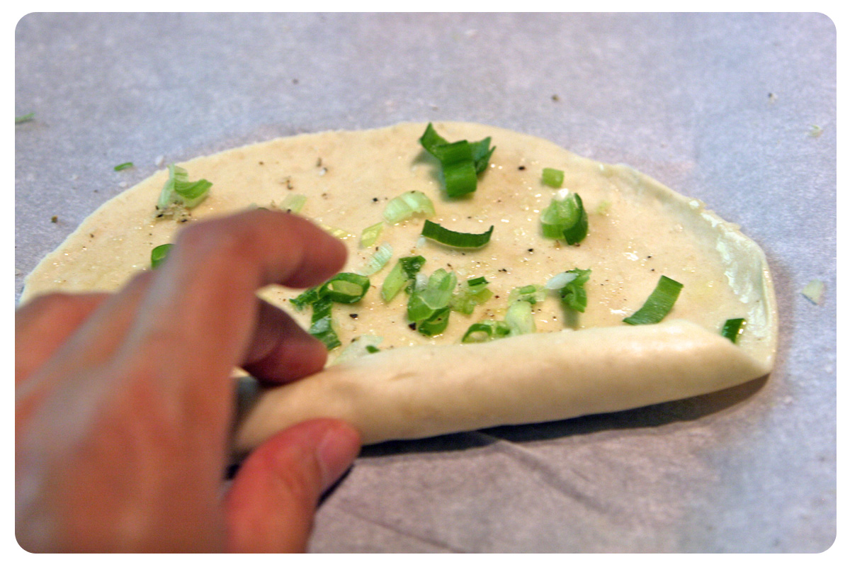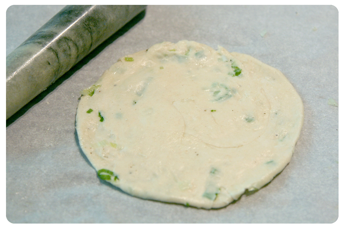 I love these little treats. What a great tip on rolling them and then flattening them so that all the yummy spring onions get mixed in well. This is a great after school snack!
